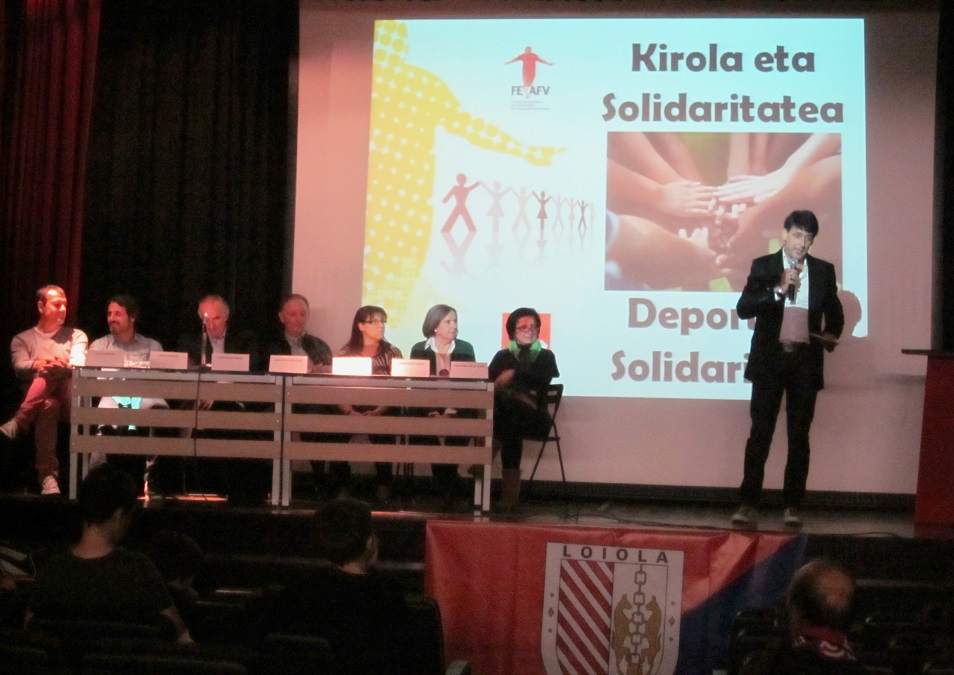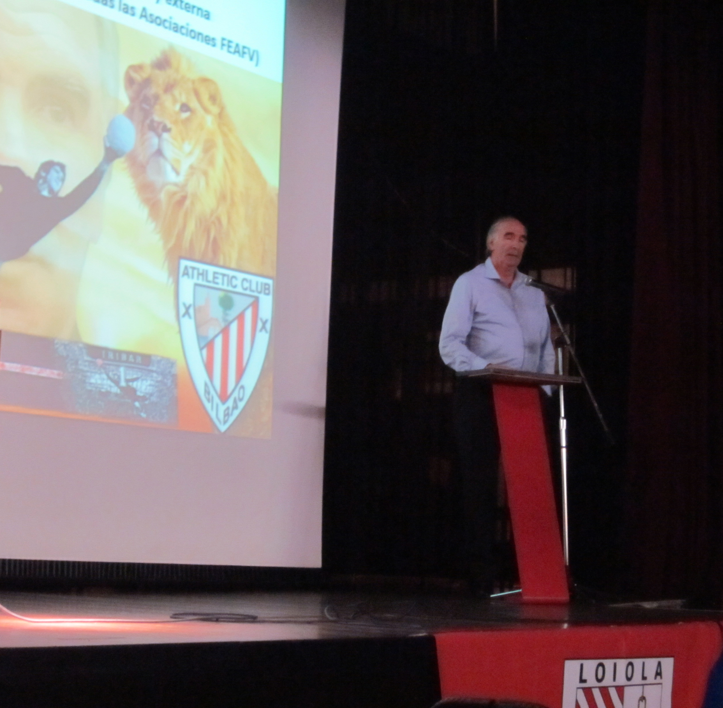 Bilbao, 31 de Octubre de 2013. La Asociación de ex jugadores del Athletic Club de Bilbao (AEA) organizó y participó en la charla coloquio que bajo el título «Deporte y solidaridad» se desarrolló en el Colegio Nuestra Señora de Begoña-Jesuitak Indautxu de la capital bilbaína.