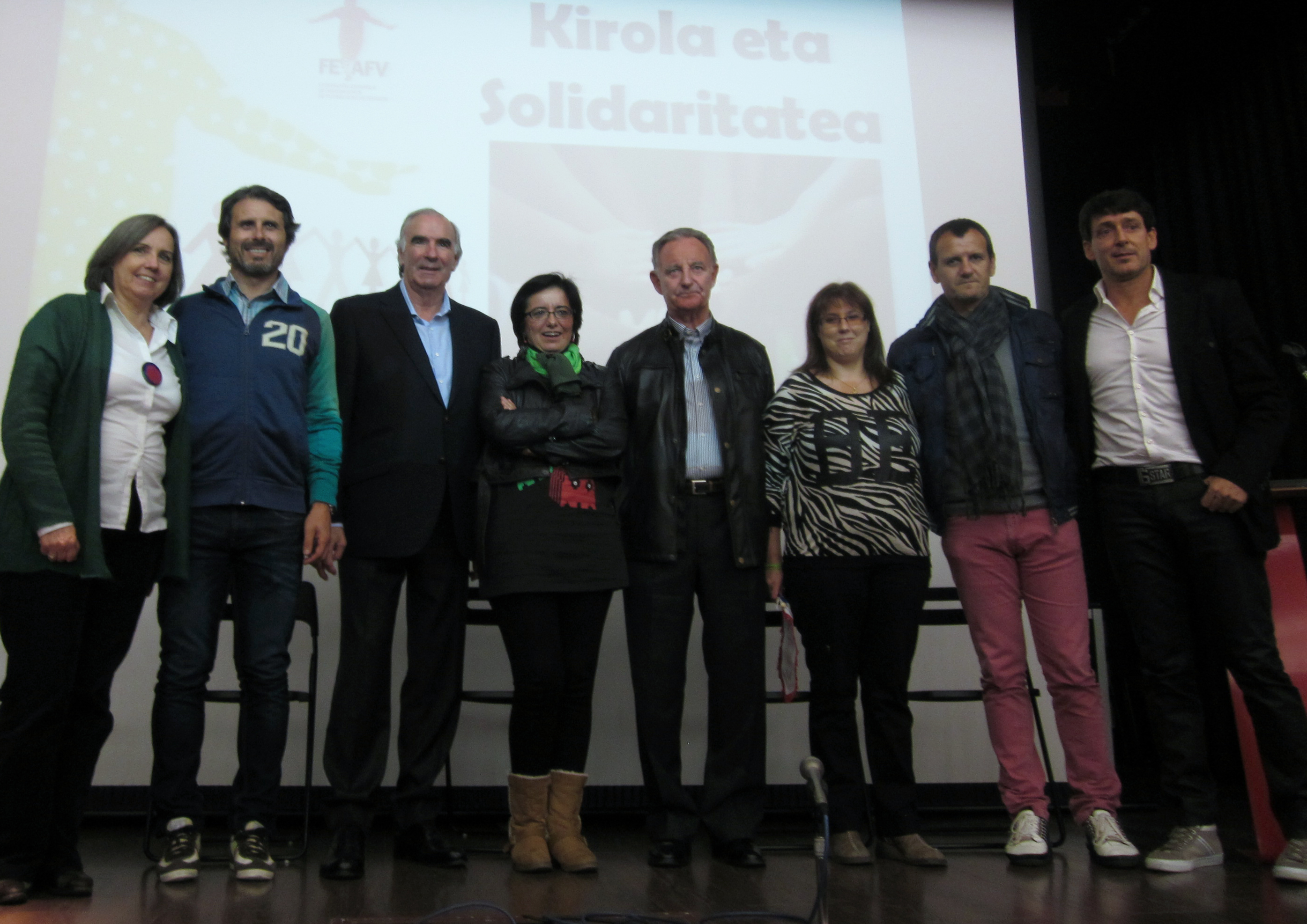 Bilbao, 31 de Octubre de 2013. La Asociación de ex jugadores del Athletic Club de Bilbao (AEA) organizó y participó en la charla coloquio que bajo el título «Deporte y solidaridad» se desarrolló en el Colegio Nuestra Señora de Begoña-Jesuitak Indautxu de la capital bilbaína.
