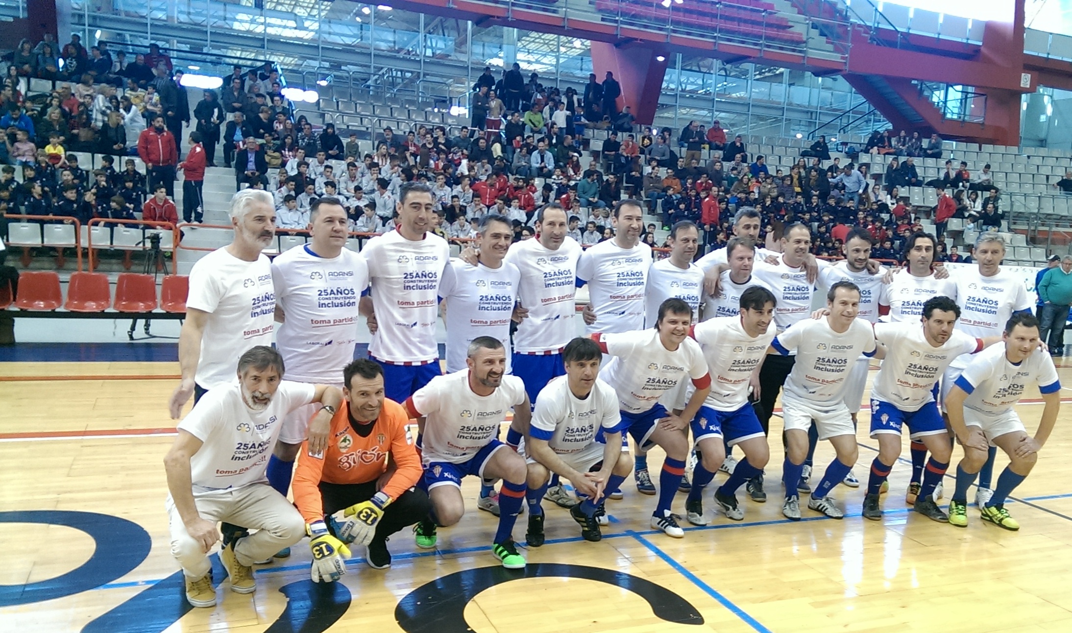 Gijón (Asturias), 28 de abril de 2016. Las Asociaciones de veteranos del Real Sporting de Gijón y del Real Oviedo disputaron un partido solidario, en el Palacio de Deportes de Gijón, a favor de ADANSI Asociación de Padres y Madres de personas con autismo. Una institución sin ánimo de lucro «cuya finalidad es promover el bienestar de las personas afectadas de autismo en el Principado de Asturias».