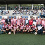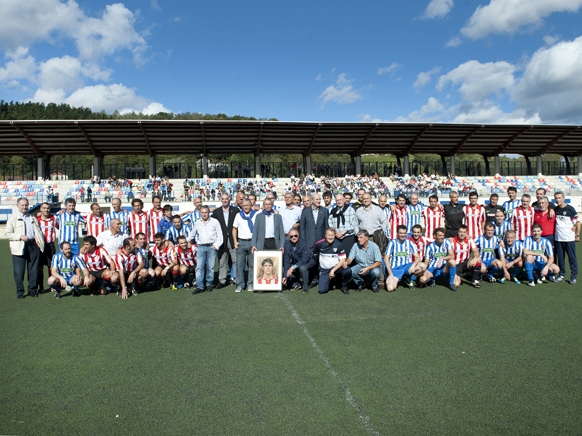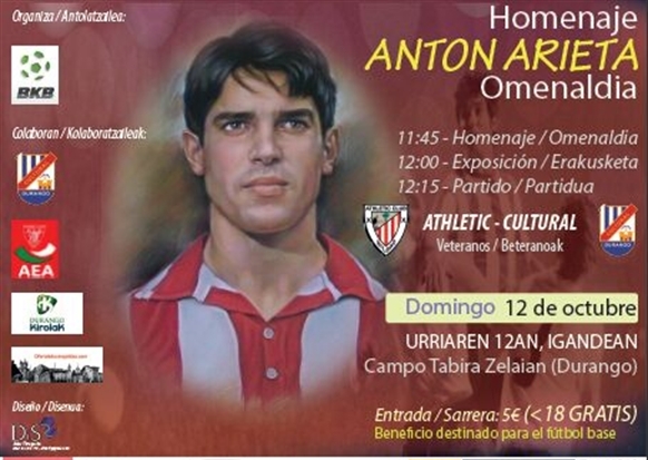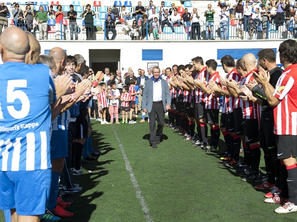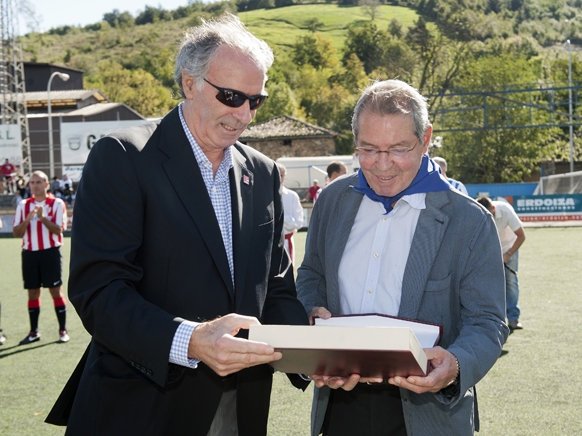 Durango (Bizkaia), 12 de octubre de 2014. Las Asociaciones de veteranos del Athletic Club de Bilbao (el club de toda su vida) y de la Cultural de Durango (su pueblo natal), y por extensión todo el fútbol vizcaíno, rindieron homenaje a Antón Arieta –Arieta II-, coincidiendo con el 50 aniversario de su debut como león allá por 1964, en un partido frente al Elche en San Mamés, donde los rojiblancos ganaron por dos goles a uno.