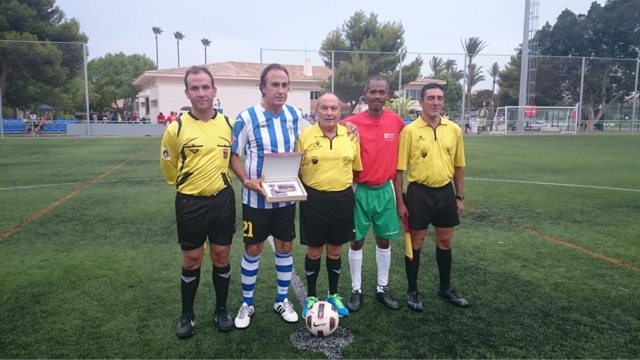 Alicante, 10 de agosto de 2015. Organizado y patrocinado por la empresa especializada en rehabilitación de edificios Grupo Renovak, con motivo de la celebración del Día de la Independencia de la República del Ecuador, los Veteranos del Hércules CF y un combinado de ciudadanos ecuatorianos residentes en la provincia de Alicante disputaron el pasado sábado 08 de agosto un partido amistoso en las instalaciones del C.A. Montemar de Alicante, dirigido por el ex árbitro Federico Pérez Gallego, y que finalizó con el resultado de 6-3 para los blanquiazules.