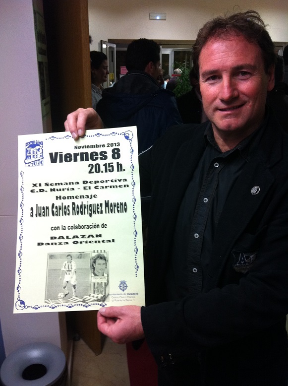 Valladolid, 8 de Noviembre de 2013. Coincidiendo con la XIª Semana Deportiva organizada por el CD Nuria, este club vallisoletano homenajeó al ex futbolista pucelano Juan Carlos Rodríguez Moreno (también ex jugador del FC Barcelona, Valencia CF y Atlético de Madrid) y actual presidente de la Asociación de veteranos del Real Valladolid.