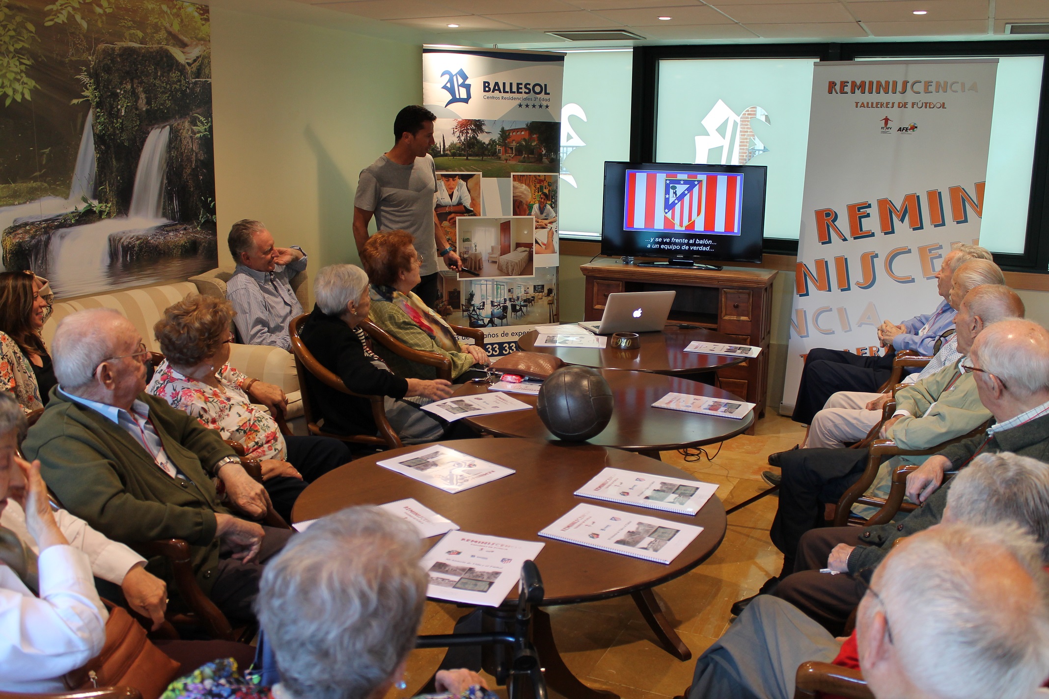 Madrid, 26 de septiembre de 2017. Siguiendo la estela iniciada en el Centro Residencial para la tercera edad Ballesol Parque Almansa, las leyendas del “Atleti” celebraron la sesión inaugural del segundo Taller de Fútbol que se implementará en la capital madrileña durante el último cuatrimestre del año 2017.