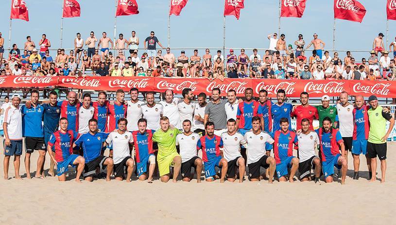 Valencia, 20 de julio de 2015. Las Asociaciones de veteranos del Valencia CF y del Levante UD disputaron la gran final de la 1ª Copa Nacional de Fútbol Playa disputada en la playa de las Arenas de la capital del Turia.