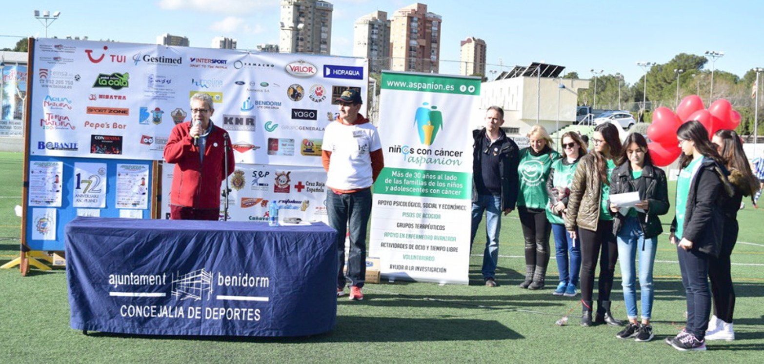 Alicante, 4 de marzo de 2016. La Asociación de la Policía Local de Benidorm realizó una Fiesta Solidaria con motivo del Día Internacional del Niño con cáncer en la Ciudad Deportiva «Guillermo Amor» de Benidorm, con la que se recaudaron 4.056 euros para la Asociación Aspanion.