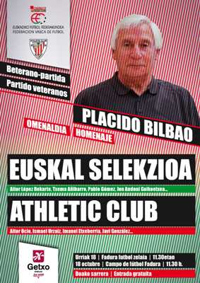 Así, toda su familia, con su mujer al frente, estuvieron presentes en los actos que se celebraron en el campo municipal de Fadura y donde tanto el Athletic, como la Real, como el Alavés, como el Eibar, quisieron estar presentes no solo con la participación de sus ex futbolistas sino también entregando un detalle conmemorativo de su club en el homenaje al inolvidable Plácido Bilbao.