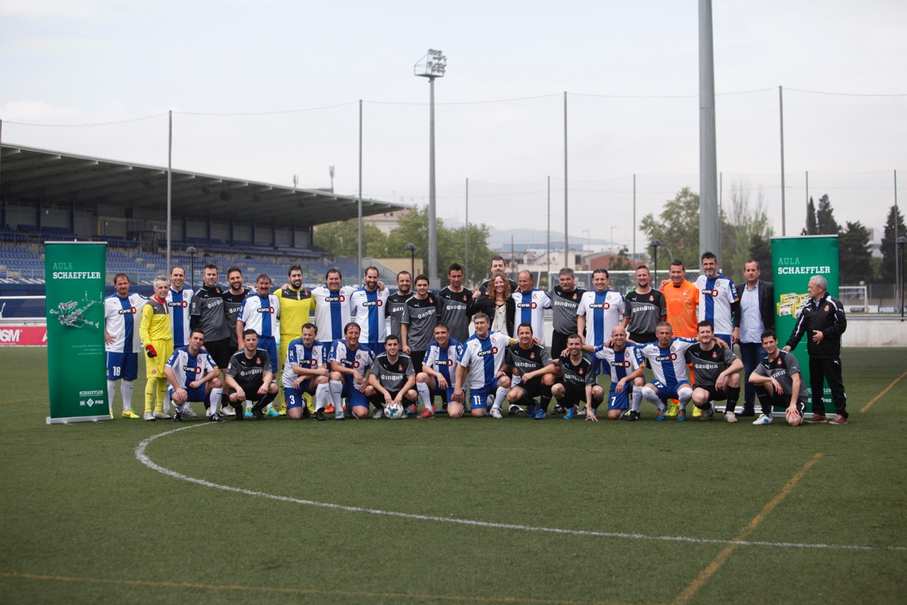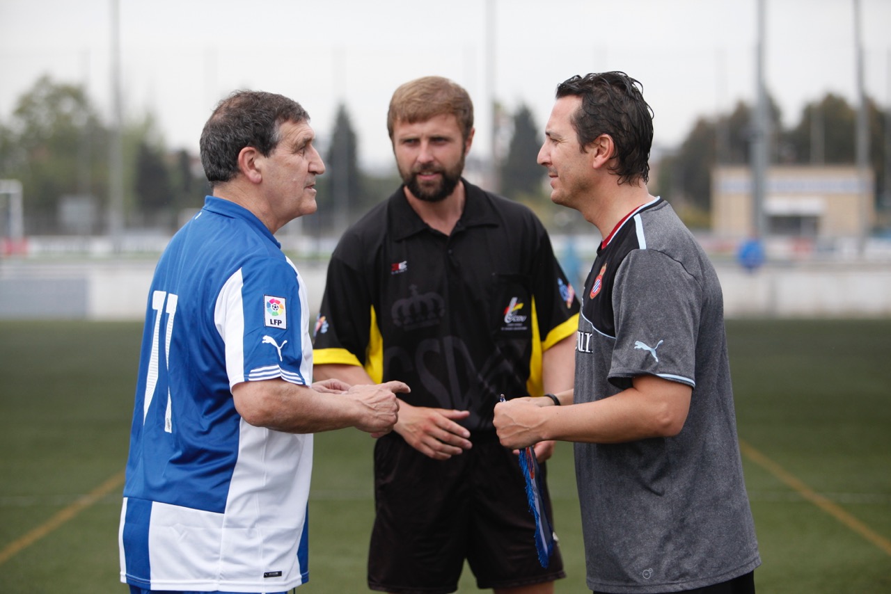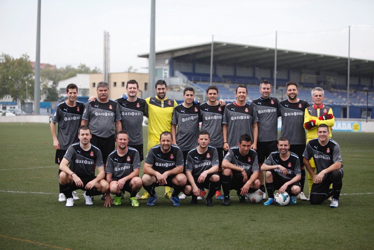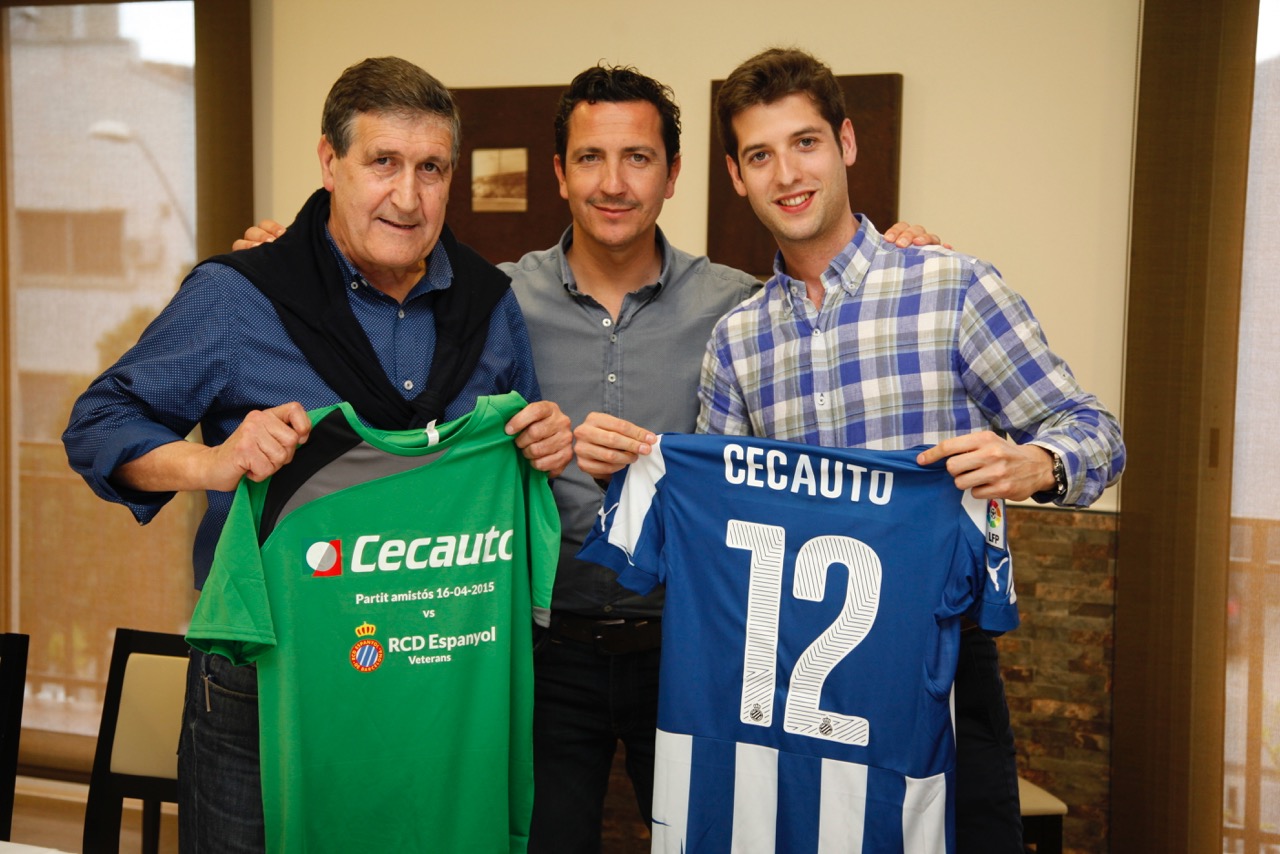 Sant Adrià –Barcelona, 16 de abril de 2015. Partido amistoso disputado en la Ciudad deportiva de Sant Adrià, entre el equipo de la Agrupación de Veteranos del RCD Espanyol y un combinado formado por directivos, trabajadores y clientes de la empresa CECAUTO (líder en el sector del recambio automovilístico), con motivo de la celebración de una jornada de hermanamiento laboral de dicha empresa.