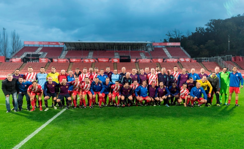 Girona, 17 de noviembre de 2018. El partido conmemorativo por el décimo aniversario de la Asociación de veteranos del Girona FC terminó con victoria de la Agrupació Barça Jugadors por 2-5.