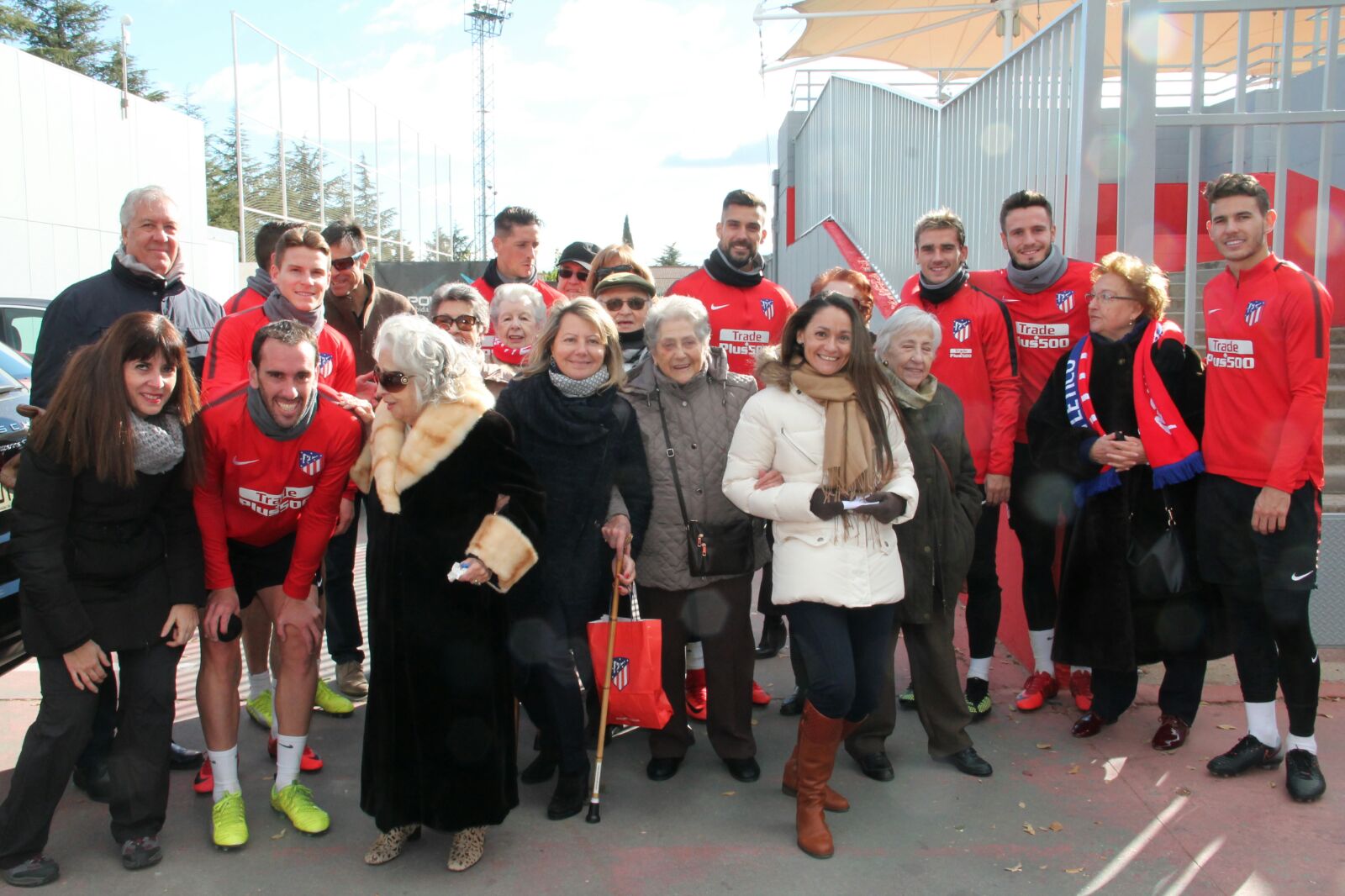 Allí pudieron seguir en directo el entrenamiento dirigido por el Cholo Simeone y al término del mismo varios de los futbolistas colchoneros -Gabi, Gameiro, Godín, Fernando Torres, Griezmann, Moyá, Lucas Hernández, Saúl,…- saludaron y se fotografiaron junto a los usuarios del programa de reminiscencia.
