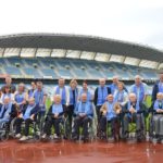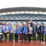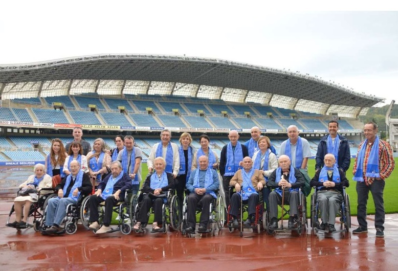 Donostia (Gipuzkoa), 18 de octubre de 2017. Los participantes en los Talleres de Fútbol «Reminiscencia» FEAFV & AFE implementados en el Centro de Día Aita Menni Arrasate y el Centro Gerontológico Julián Rezola Matia Fundazioa, realizaron una visita guiada por el Museo de la Real Sociedad y posteriormente saltaron al Estadio de Anoeta para vivir las emociones de sus recuerdos “txuriurdines” a ras de césped.