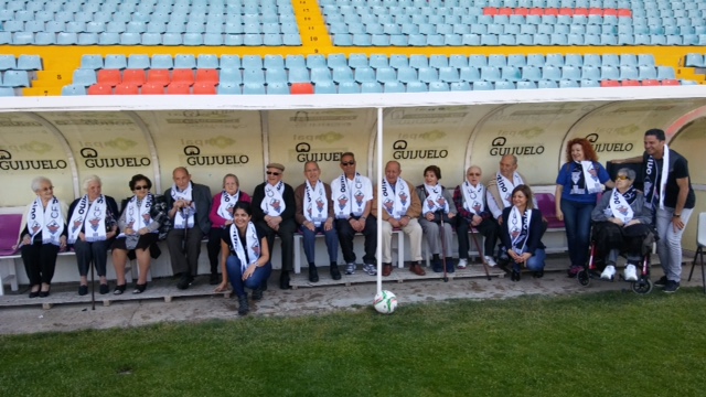 Junto a los usuarios del programa de reminiscencia, familiares, profesionales del centro y el dinamizador FEAFV en la Zona Castilla y León, Javi Torres Gómez; también estuvieron presentes ilustres leyendas del conjunto charro como Paco Caste, Antonio, Manolín, Huerta, Cefe y Ángel Lozano, quienes ejercieron de extraordinarios anfitriones rememorando anécdotas y recuerdos de sus partidos en El Helmántico.
