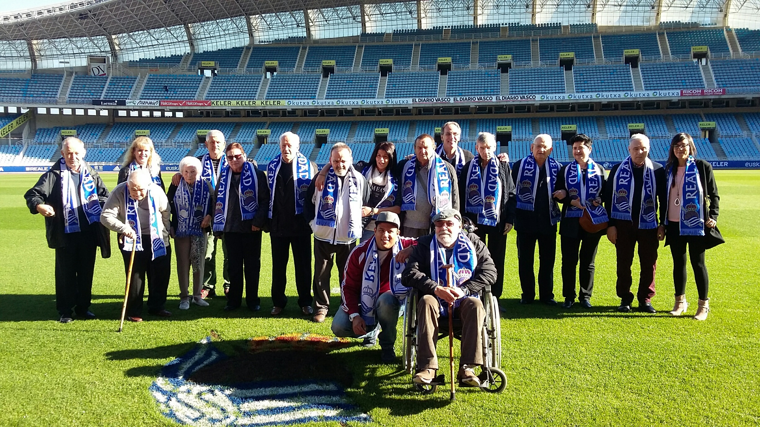 Acompañados por Alberto Gorriz, presidente de la Asociación de Ex Jugadores de la Real Sociedad; Andoni Iraola, Director de la Fundación del club donostiarra; Iñaki Mendoza, director del Museo; Andoni Ayarza, Coordinador General del Proyecto Reminiscencia FEAFV & AFE y Director del Taller de Fútbol en el Hospital Aita Menni de Mondragón; Mikel Tellaeche, Gerente de Servicios Sociales Aita Menni y Jose Ezkerra; Director de Psicología de Aita Menni; todos los participantes fueron visitando las diferentes zonas del estadio de Anoeta: la sala de prensa, donde vieron un vídeo sobre la realización del estadio y sus instalaciones interiores; el vestuario txuriurdin, donde pudieron fotografiarse junto a las camisetas de sus ídolos; hasta el propio césped del Estadio de Anoeta donde imaginaron las sensaciones que viven los futbolistas profesionales con las gradas abarrotadas por la afición.