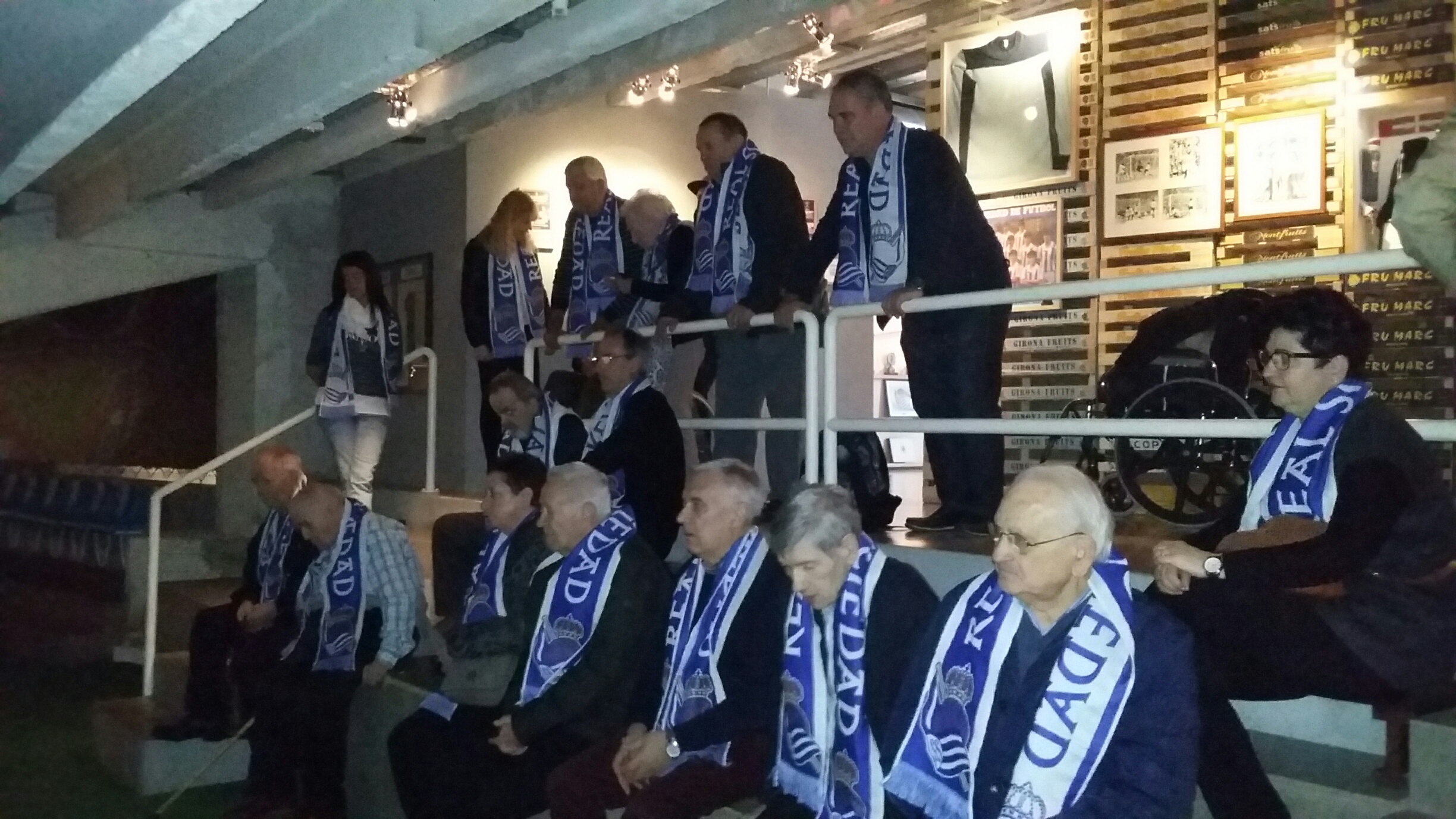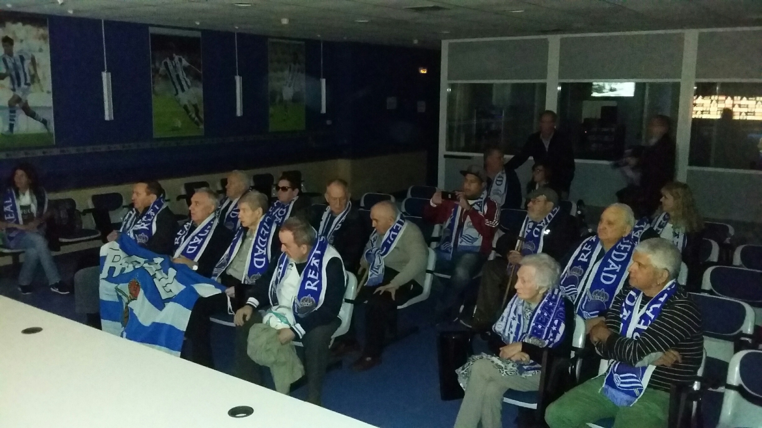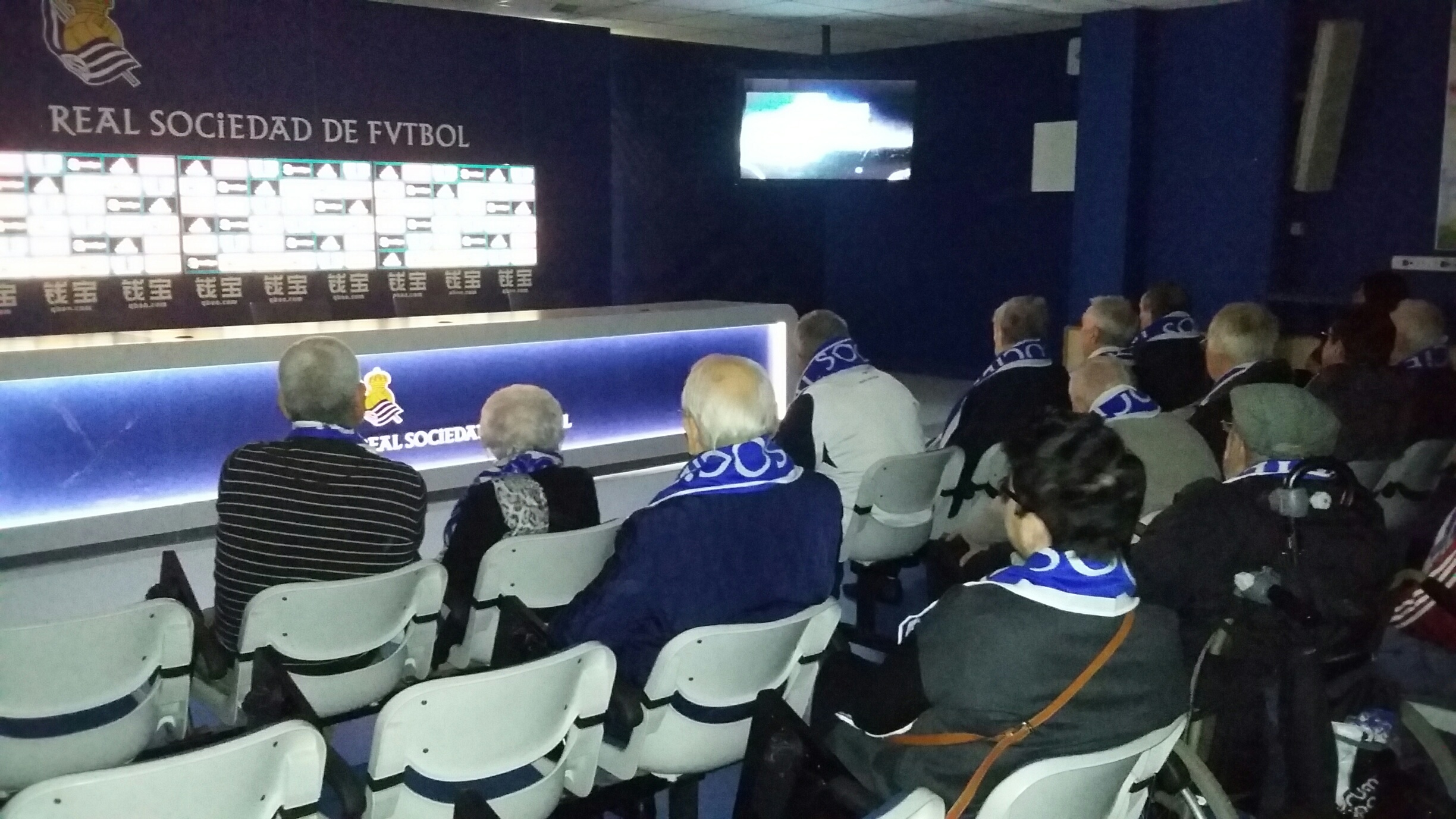 Tras la visita al Estadio toda la expedición se trasladó al Museo del club –ubicado bajo una de las gradas- y allí revivieron los momentos más gloriosos de la historia de la Real Sociedad, viendo los vídeos de los partidos históricos y contemplando los trofeos que adornan esas páginas de gloria, en especial los títulos de Liga, Copa y Supercopa conquistados en la década de los 80.