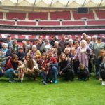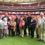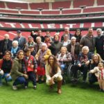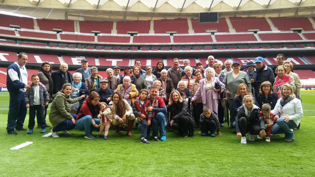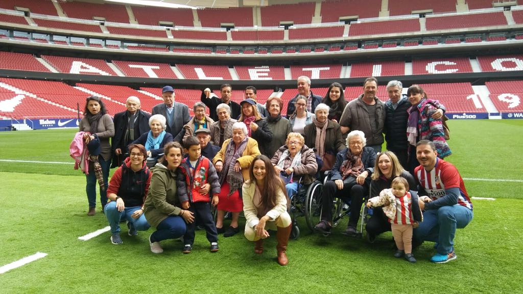 Madrid, 4 de noviembre de 2017. Los participantes en los Talleres de Fútbol Reminiscencia FEAFV & AFE implementados en las Residencias del Grupo Ballesol Parque Almansa y Olavide; junto a sus familiares y los profesionales de ambos centros, visitaron el nuevo Estadio del Atlético de Madrid, el «Wanda Metropolitano».