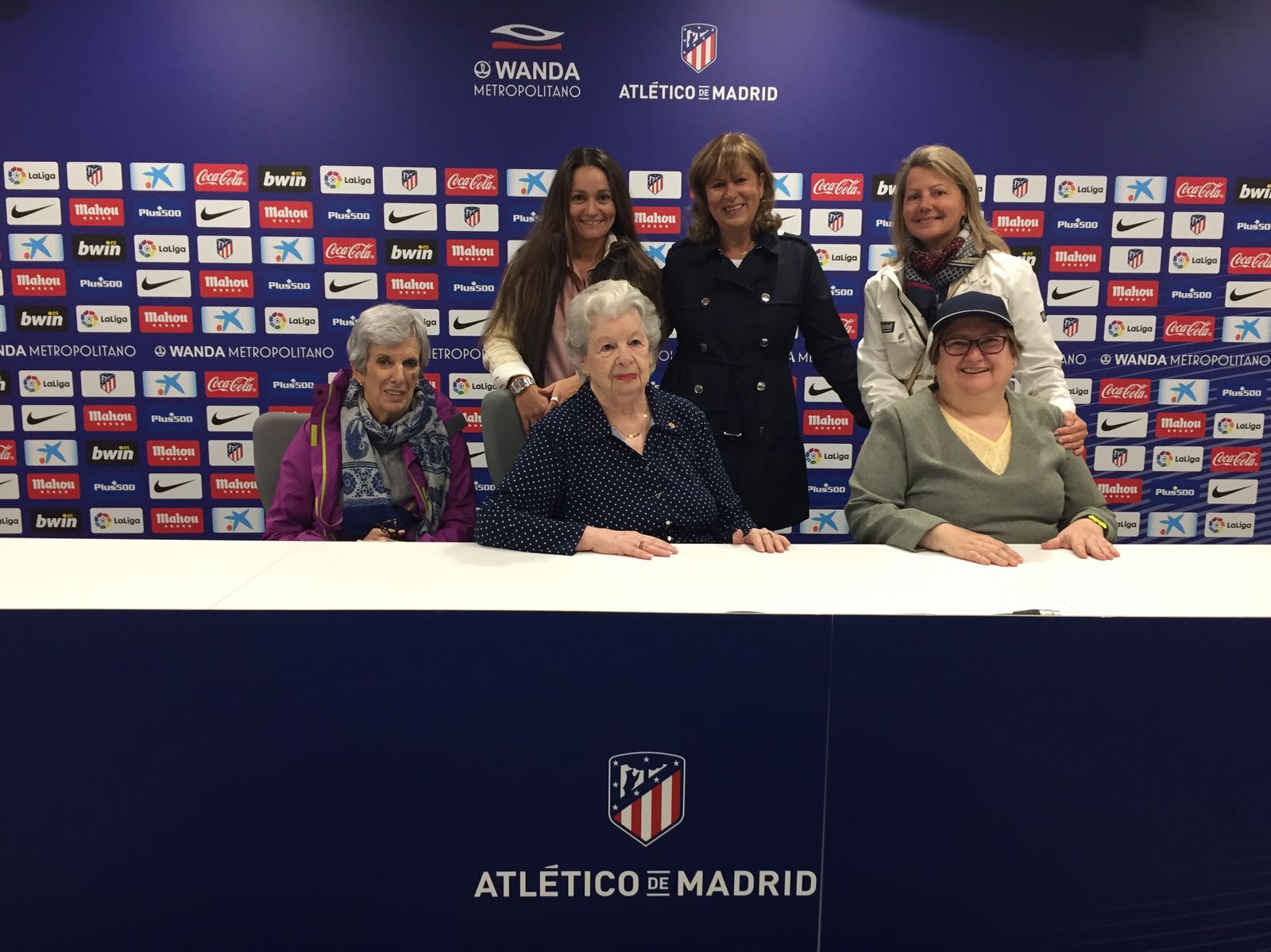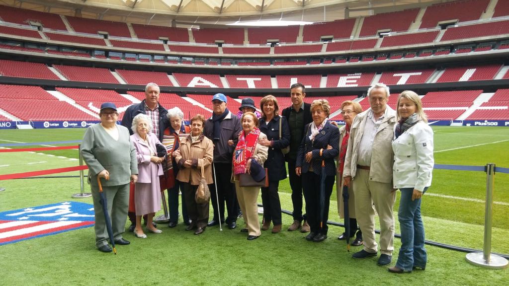 Junto a la expedición llegada desde los centros Ballesol, estuvieron presentes Javi Torres, dinamizador en ambos talleres; Roberto Solozabal, presidente de la Asociación de Leyendas del Atleti; y José Eulogio Gárate, uno de los grandes mitos de la historia del club colchonero y presidente honorífico de la agrupación.