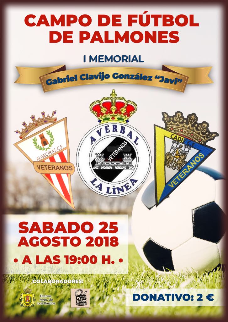 Palmones (Cádiz), 26 de agosto de 2018. Las Asociaciones de veteranos del Cádiz CF y de la Real Balompédica Linense -ambas miembros FEAFV-, junto a la Agrupación de Ex Jugadores del Algeciras FC, participaron en el 3×1 disputado en el Campo de Fútbol de Palmones con motivo del I Memorial Gabriel Clavijo González “Javi”, ex presidente del Juventud de Palmones, recientemente fallecido.