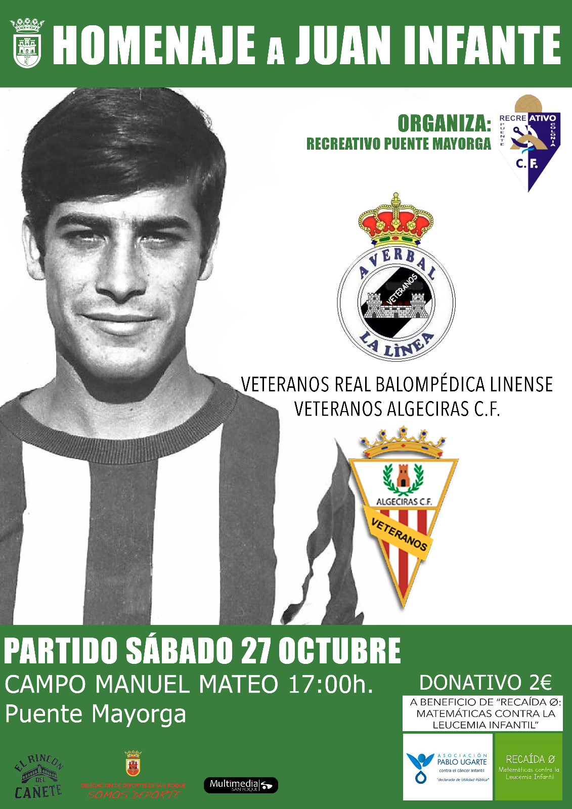 Puente Mayorga-San Roque (Cádiz), 27 de octubre de 2018. Las Asociaciones de veteranos de la Real Balompédica Linense “La Balona” y del Algeciras CF se dieron cita en el Campo municipal “Manuel Mateo” para rendir homenaje al ex futbolista de ambos equipos Juan Infante, una figura deportiva íntimamente ligada a los populares barrios de Puente Mayorga y Campamento.