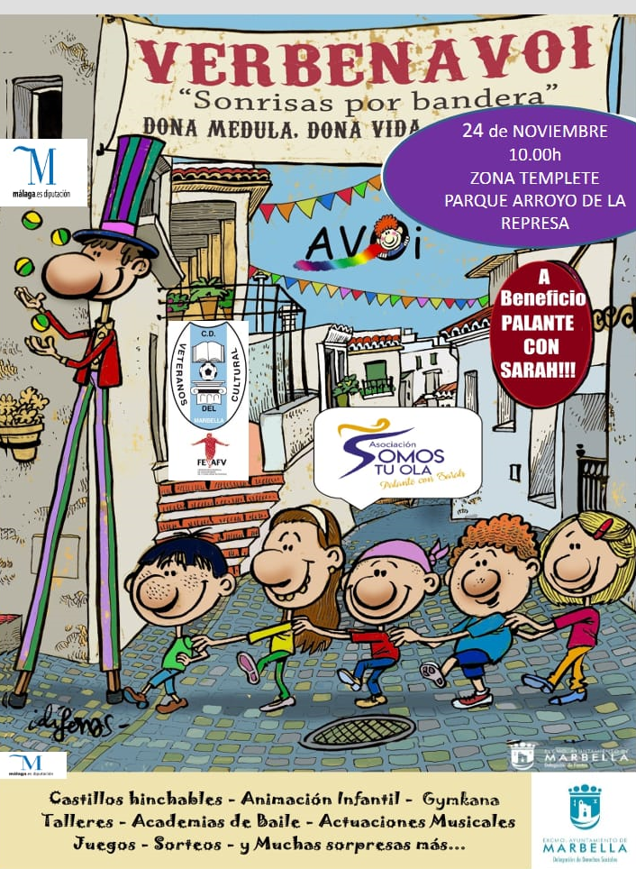 Marbella (Málaga), 25 de noviembre de 2018. Casi 8.000 euros fueron recaudados en la Verbena Solidaria celebrada el pasado sábado en el Parque Arroyo de la Represa de Marbella. La recaudación del evento, organizado por la Asociación de Voluntarios de Oncología Infantil (Avoi) y los Veteranos del Cultural, irá destinada íntegramente a la Asociación Somos tu Ola.