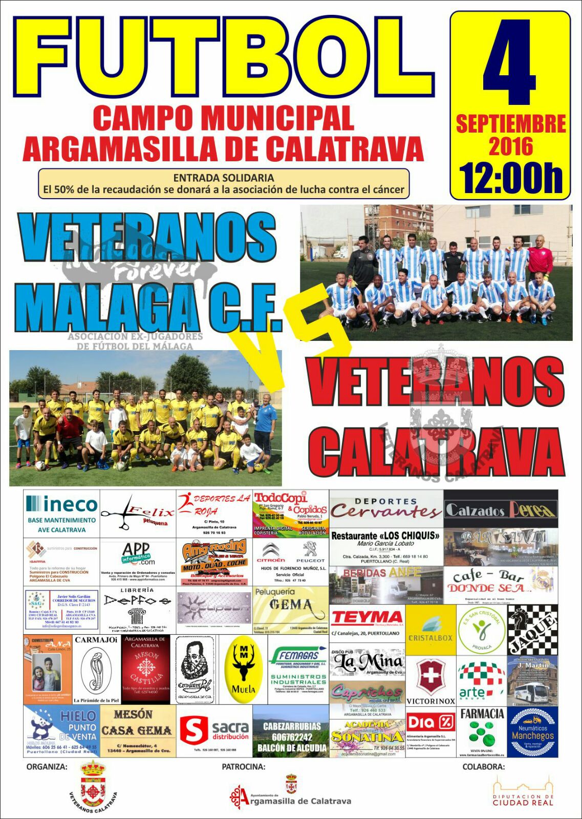 Argamasilla de Calatrava (Ciudad Real), 4 de septiembre de 2016. El equipo de veteranos de la Asociación de Ex Jugadores de Fútbol del Málaga disputó un partido benéfico en la localidad manchega de Argamasilla de Calatrava contra los veteranos del Calatrava.