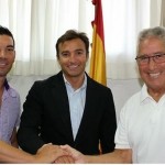 Alicante, 25 de julio de 2014. Los presidentes del Hércules CF y de la Asociación de Veteranos del Hércules CF, Carlos Parodi y Rafa Gallar, suscribieron la renovación del convenio de colaboración, que mantenían ambas entidades desde la temporada pasada, para la temporada 2014/2015.