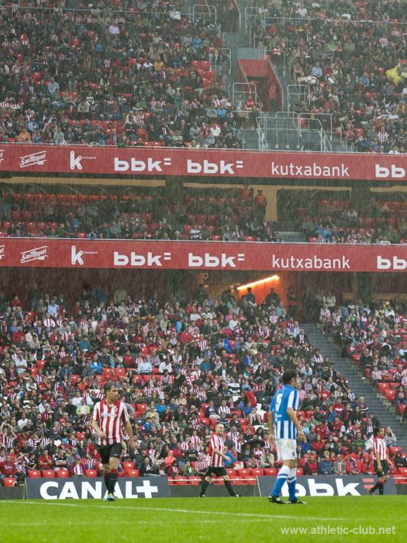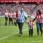 Tras el saque de honor realizado por Aitor, un niño afectado por la enfermedad del Síndrome de Angelman (una de las asociaciones beneficiarias del partido junto a Feder-Federación Española de enfermedades raras y Cáritas Bizkaia), «leones» y «txuriurdines» se batieron bajo la lluvia haciendo las delicias de todos los espectadores que se dieron cita en el nuevo SAN MAMES.