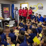 Carreras, que también es directivo de la ABJ y un miembro activo del equipo de fútbol, se interesó sobre las inquietudes y los aspectos de mejora de los infantiles y alevines del CF Palamós que llenaban la sala de prensa del Estadio Palamós – Costa Brava.