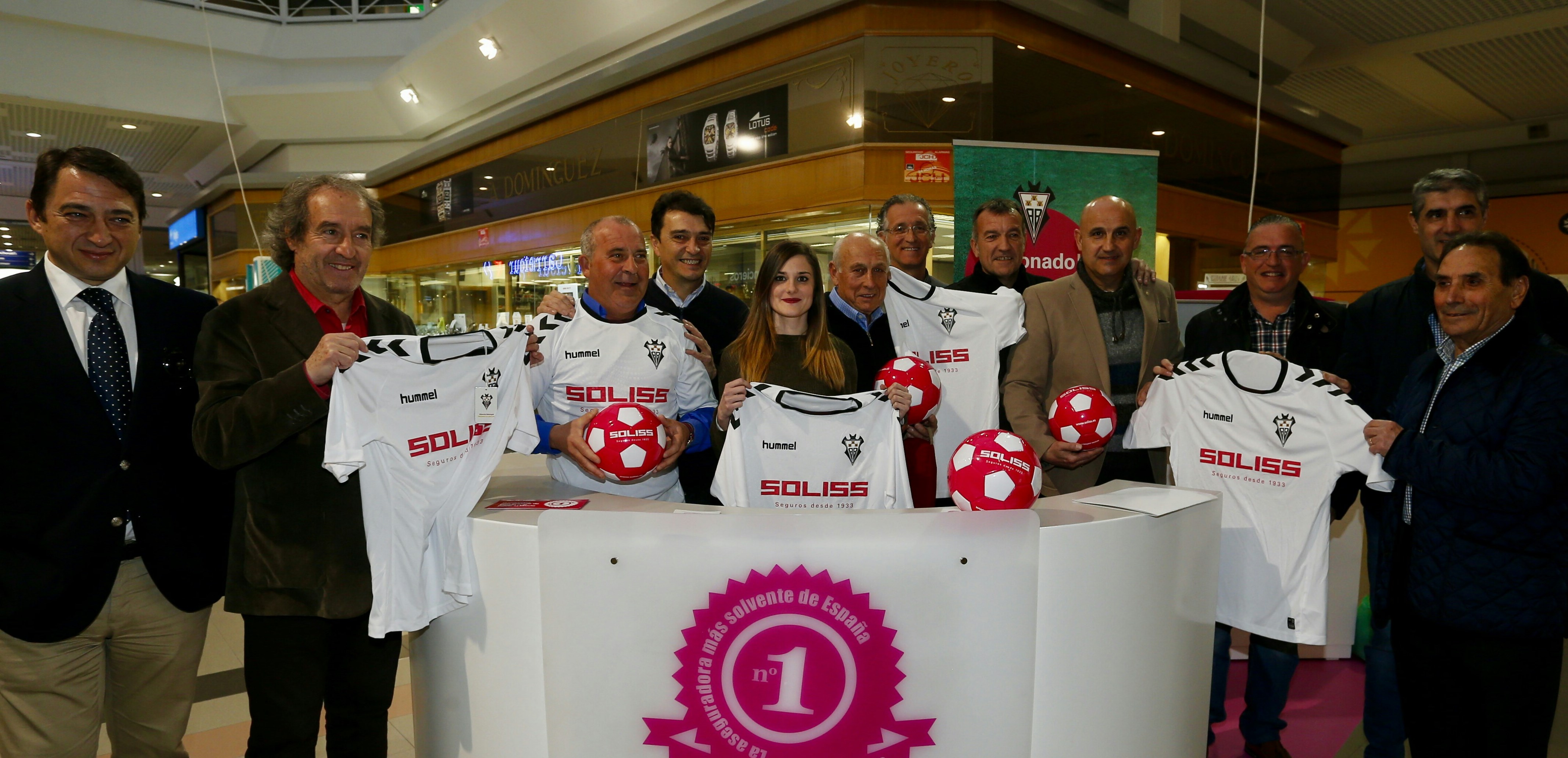 Albacete, 20 de marzo de 2017. La Asociación de Ex futbolistas del Albacete Balompié recibió de Seguros Soliss la equipación del primer equipo para lucirla en La Liga Solidaria de Veteranos en el que, por zonas, está encuadrada en su Zona Levante.