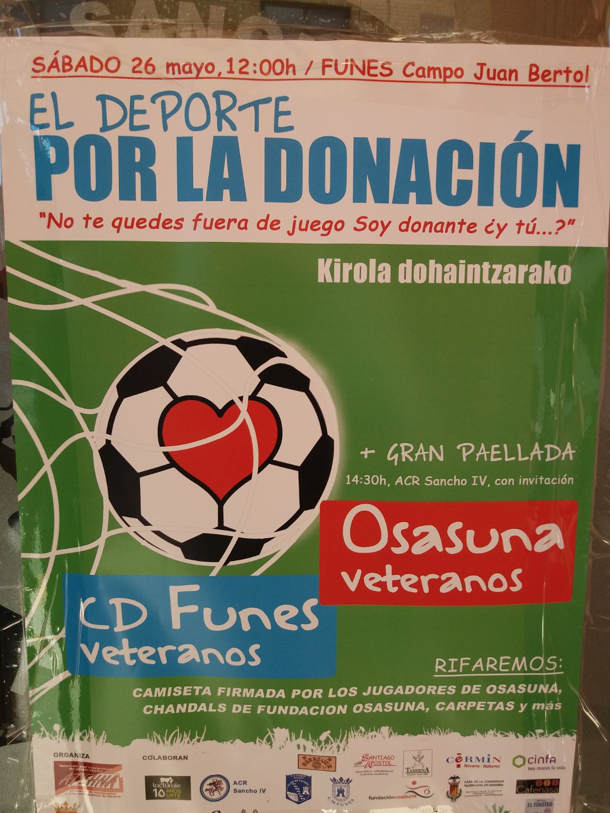 Funes (Navarra), 26 de mayo de 2018. El campo municipal “Juan Bertol” del municipio navarro de Funes acogió el partido solidario entre los equipos de veteranos del CA Osasuna y CD Funes.