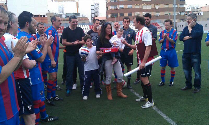 Puerto de Sagunto (Valencia), 26 de Abril de 2014. La Asociación de veteranos del Levante UD participó en el partido benéfico a favor de Sonia, una niña de 18 meses gravemente enferma.