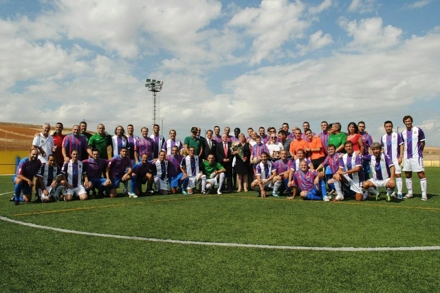 Villa de Ajalvir (Madrid), 13 de septiembre de 2014. Granotas y pucelanos unieron esfuerzos para sumarse al proyecto benéfico «Colabora con Marcos». Y lo hicieron con un vibrante partido, que concluyó con empate a uno. Un programa de actividades, partido de fútbol incluido, para ayudar a Marcos López Obregón, joven vecino de Ajalvir aquejado de una enfermedad denominada Síndrome de George, y cuyo objetivo fue recaudar fondos para poder comprar una silla eléctrica,