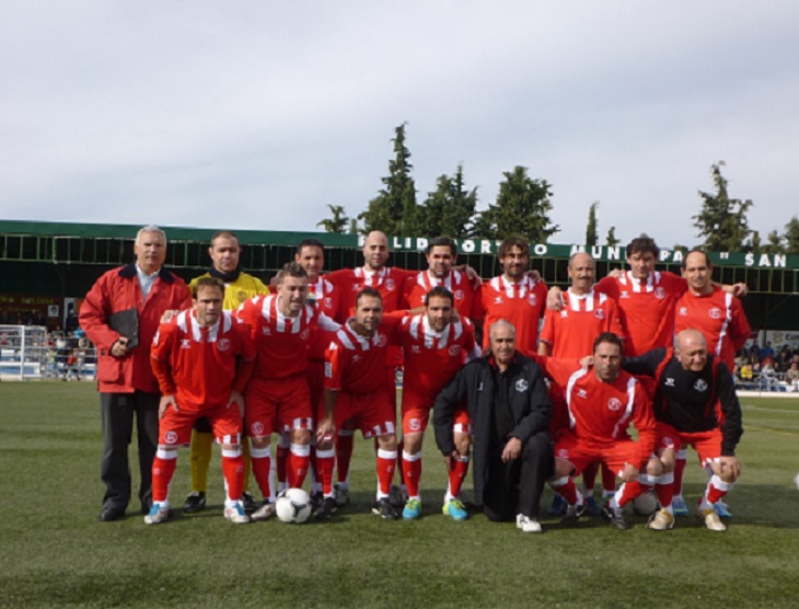 Villanueva del Arzobispo (Jaén), 1 de Diciembre de 2013. Con una excelente entrada en el municipal de Villanueva, se celebró el partido de fútbol benéfico entre una selección de Jaén y los veteranos del Sevilla Fútbol Club.