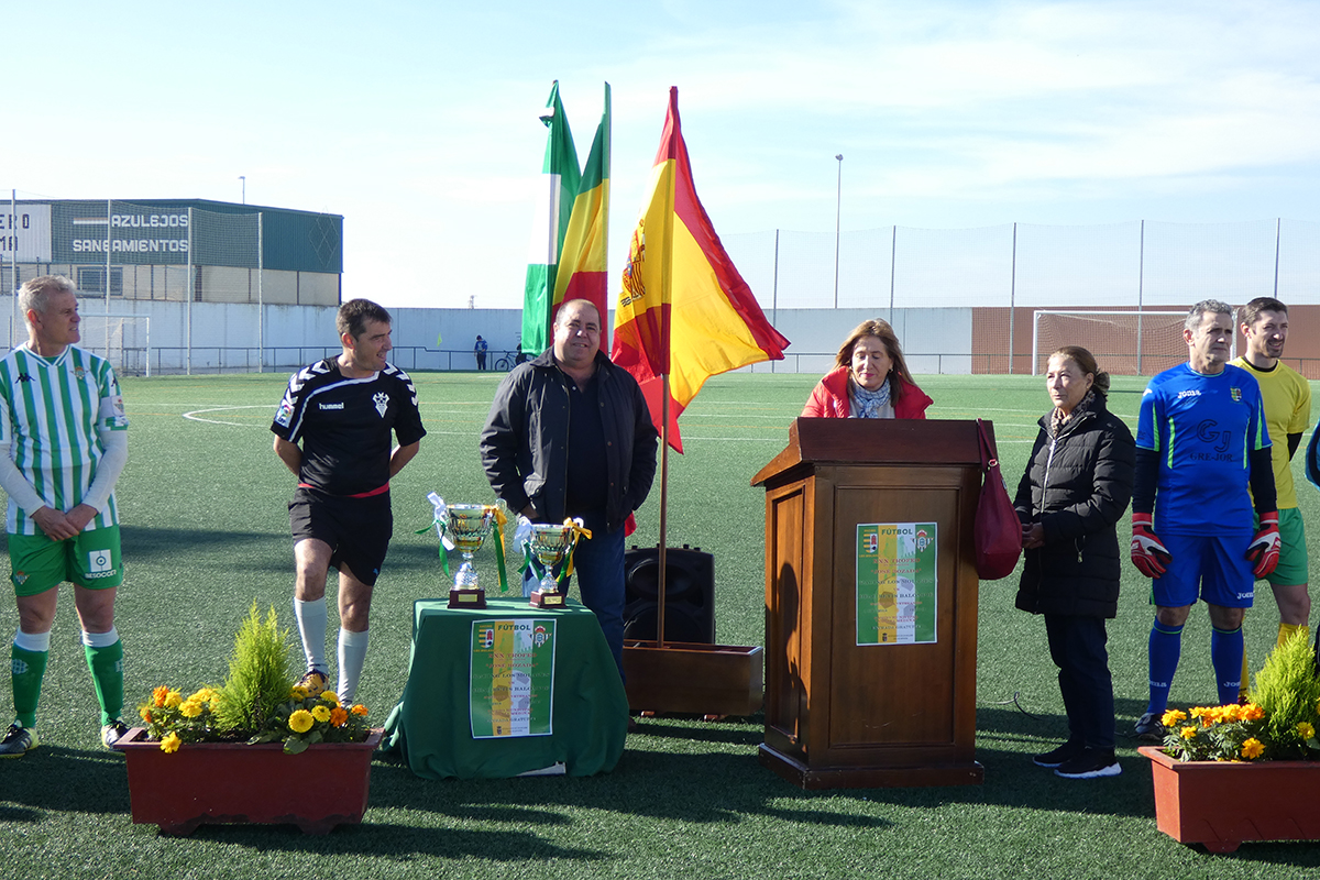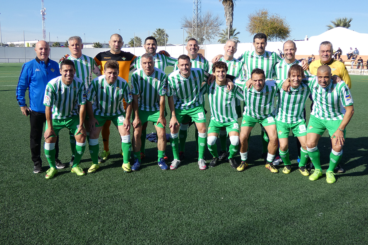 Los Molares (Sevilla), 1 de diciembre de 2018. El equipo de veteranos de la Asociación de Ex Futbolistas del Real Betis Balompié visitó la localidad sevillana de Los Molares para disputar un encuentro amistoso con el Racing Los Molares, en el marco del XXX Trofeo José Bozada. El partido se saldó con un 2-6 a favor de la escuadra verdiblanca.