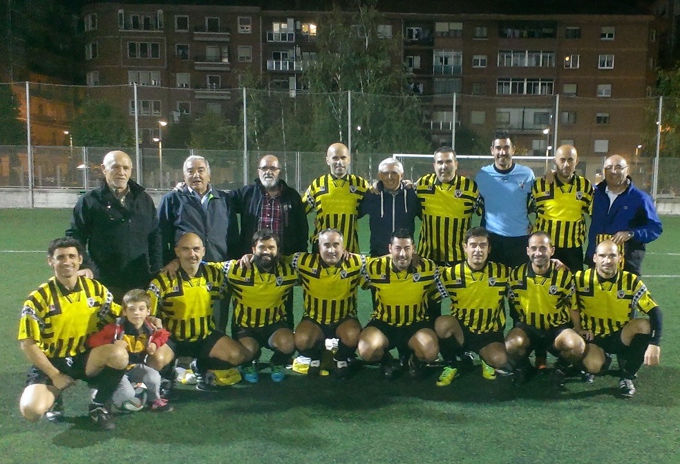 Barakaldo (Bizkaia), 16 de octubre de 2015. El pasado viernes día 16 de Octubre se disputó un encuentro amistoso de fútbol-7, en el Polideportivo de Lasesarre de Barakaldo, entre la Asociación de Veteranos de la Unió Esportiva Figueres y la Asociación gualdinegra del Barakaldo CF. La victoria, no siendo lo más importante, fue favorable para los intereses baracaldeses.