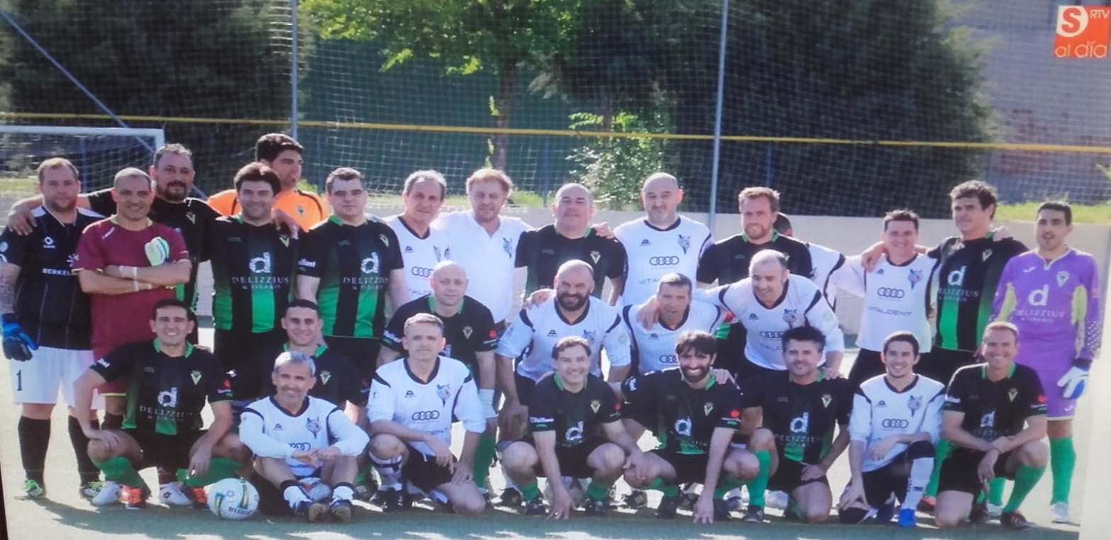 Salamanca, 17 de junio de 2018. La Asociación de veteranos de la UD Salamanca participó en el partido homenaje que el club salamantino CD Jai Alai quiso rendir a uno de sus futbolistas más ilustres, Javier Pérez Jiménez “Chiquita”, fallecido en un accidente el pasado mes de octubre.