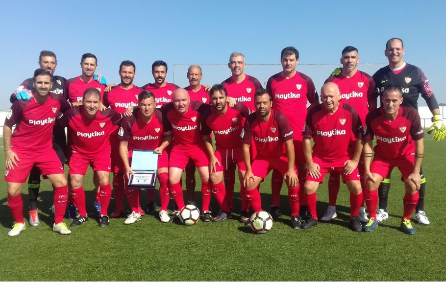 El encuentro, estreno de la temporada para la agrupación de ex jugadores sevillistas, se disputó en el Estadio Municipal de Santiponce contra un combinado de veteranos de la localidad y terminó decidiéndose en favor de la escuadra hispalense.