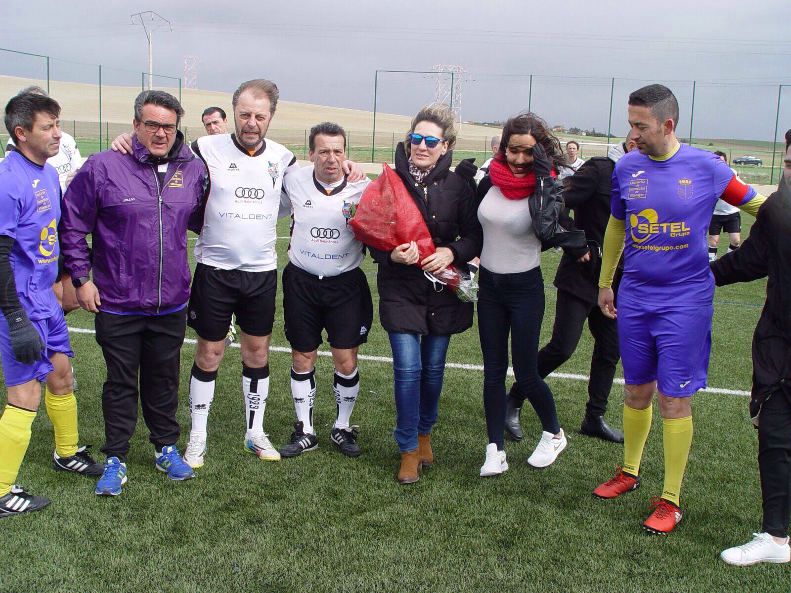 Villamayor (Salamanca), 11 de marzo de 2018. La Asociación de veteranos de la UD Salamanca participó en el partido conmemorativo celebrado en el Campo de «El Salinar»del municipio salmantino de Villamayor, en homenaje a Serafín De La Torre Torregrosa.