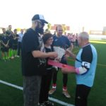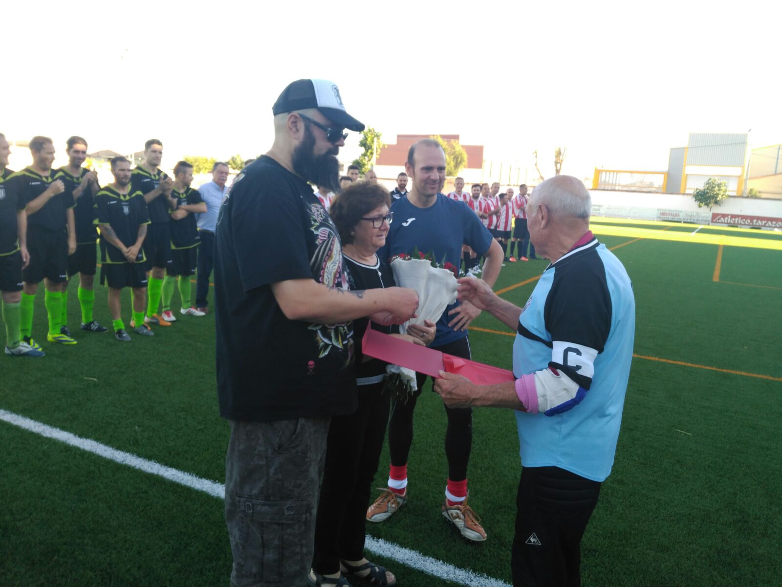 Los equipos participantes hicieron entrega a la mujer e hijos del homenajeado de ramos y placas conmemorativas de un emotivo acto que contó con una buena afluencia de público.