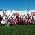 Albaida de Aljarafe (Sevilla), 28 de junio de 2014. La Asociación de veteranos del Sevilla Fútbol Club participó en el homenaje al jugador del equipo de veteranos del Albaida, y también socio de la peña sevillista, Manuel Ibañez Parra, fallecido recientemente.