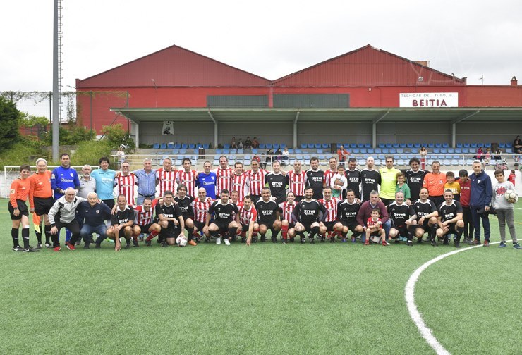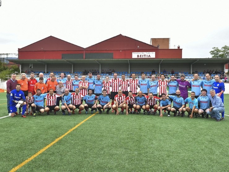 Larrabetzu (Bizkaia), 27 de mayo de 2018. Las instalaciones deportivas del “Uritarra Kirol Taldea” de Larrabetzu fueron el escenario del triangular benéfico en el que participó la Asociación de Ex Jugadores del Athletic Club de Bilbao, junto a sus homónimos del Uritarra y Ezkerraldeko Selekzioa.
