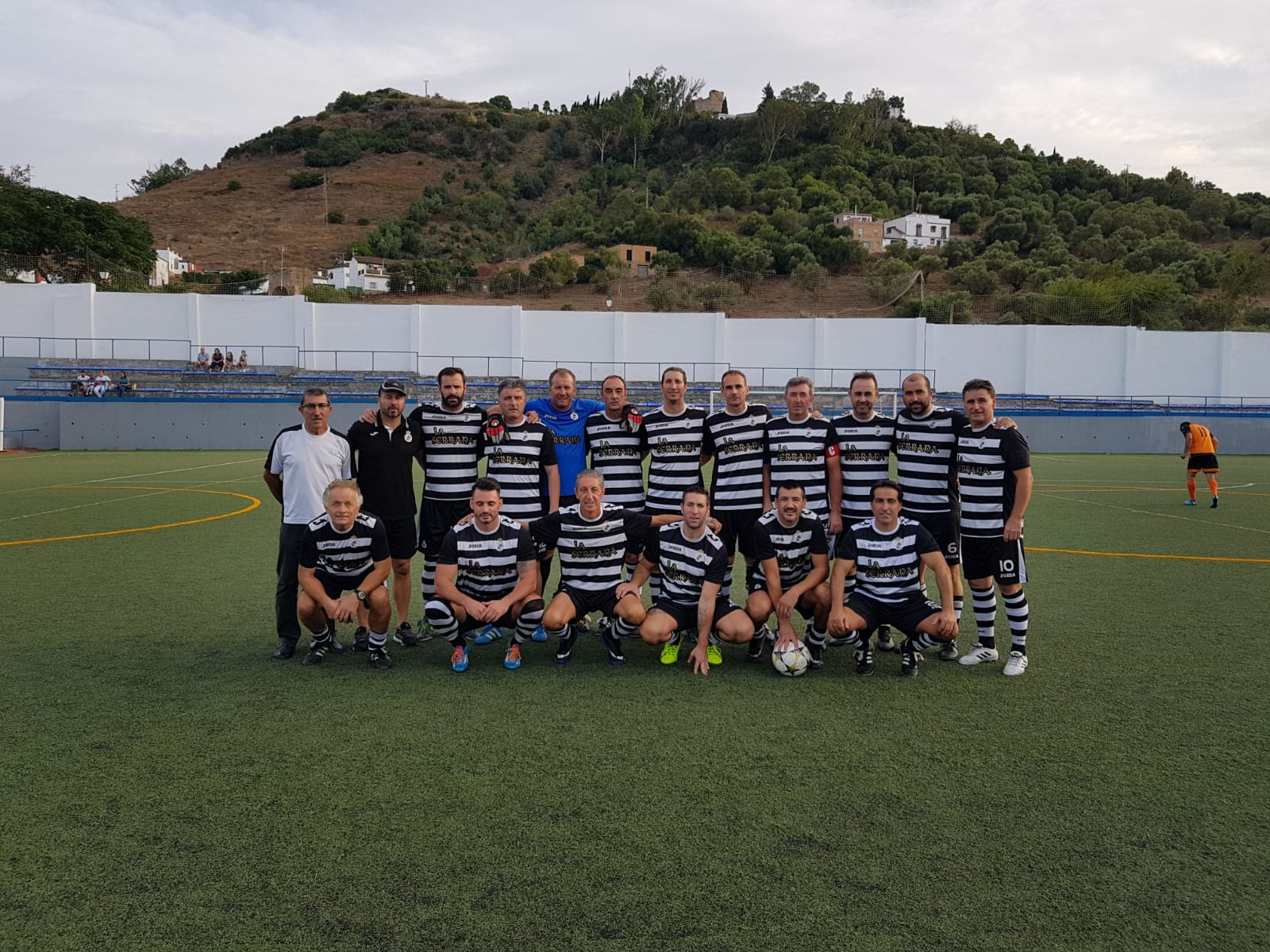 Alcalá de los Gazules (Cádiz), 6 de octubre de 2018. El Campo Municipal de Alcalá de Gazules fue el escenario del partido solidario que disputaron las asociaciones de veteranos de la Real Balompédica Linense -La Balona- y el CF Veteranos Alcalá de Gazules.