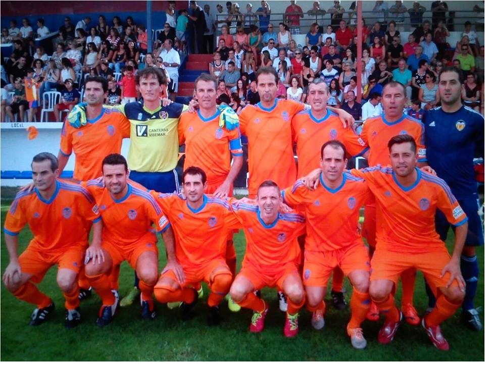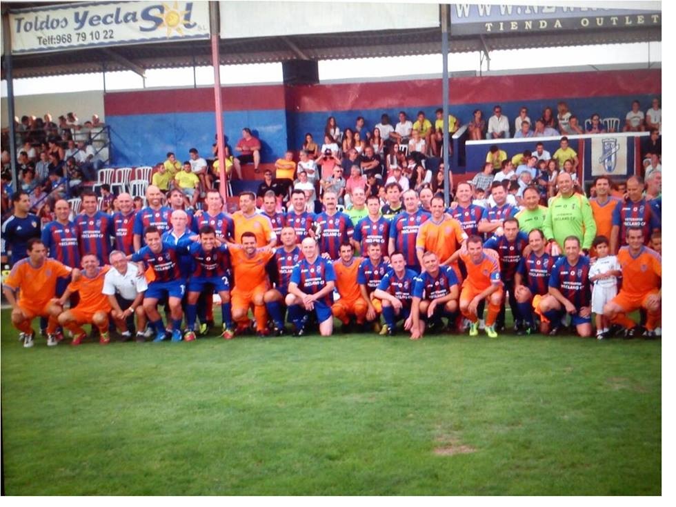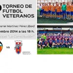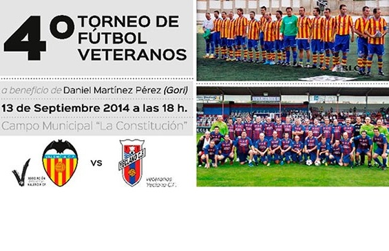 Yecla (Murcia), 13 de septiembre de 2014. Los veteranos del Yeclano CF y los ex futbolistas del Valencia CF se unieron en un partido solidario para recaudar fondos para la familia de Daniel Martínez Pérez “Gori”, un deportista de la localidad murciana que sufrió hace dos años una muerte súbita recuperable.