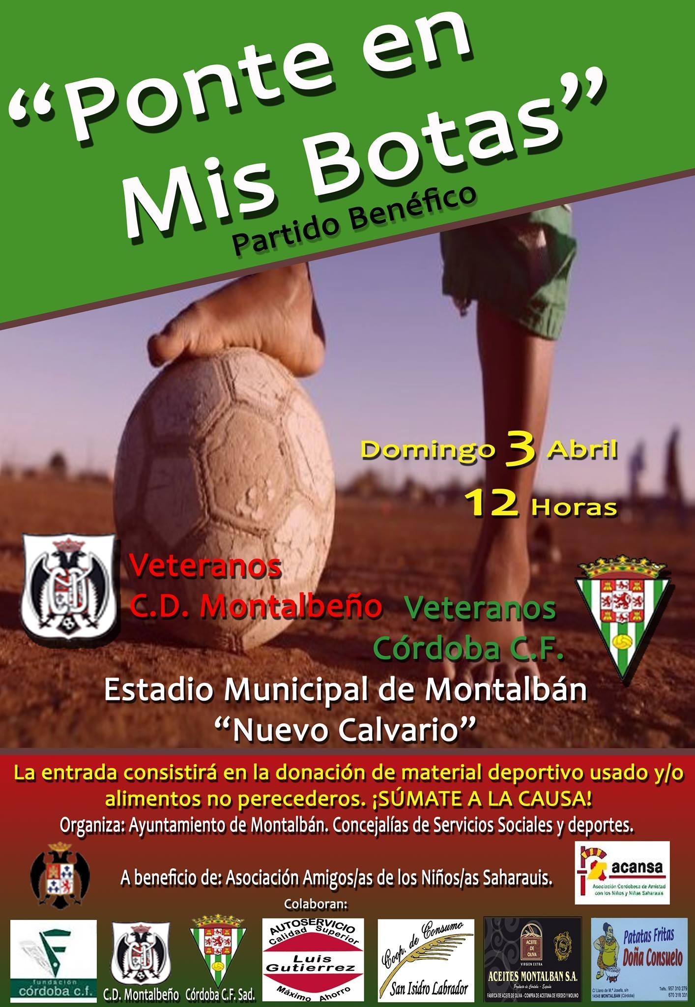 Organizado por las concejalías de deportes y acción social del ayuntamiento de Montalbán la entrada al evento consistió en la donación de material deportivo nuevo y/o usado y en la entrega de alimentos no perecederos. Toda la recaudación obtenida se entregó a la Asociación de amigos/as de niños y niñas saharauis.