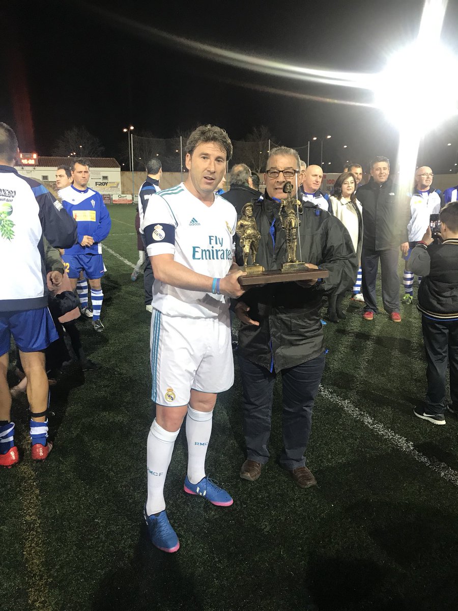 Villarrubia de los ojos (Ciudad Real), 10 de marzo de 2018. El equipo de ex futbolistas del Real Madrid se impuso con rotundidad (1-8) en el partido conmemorativo celebrado en el municipio ciudadrealeño de Villarrubia de los Ojos frente a un combinado de veteranos local.