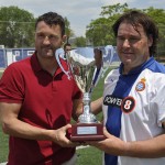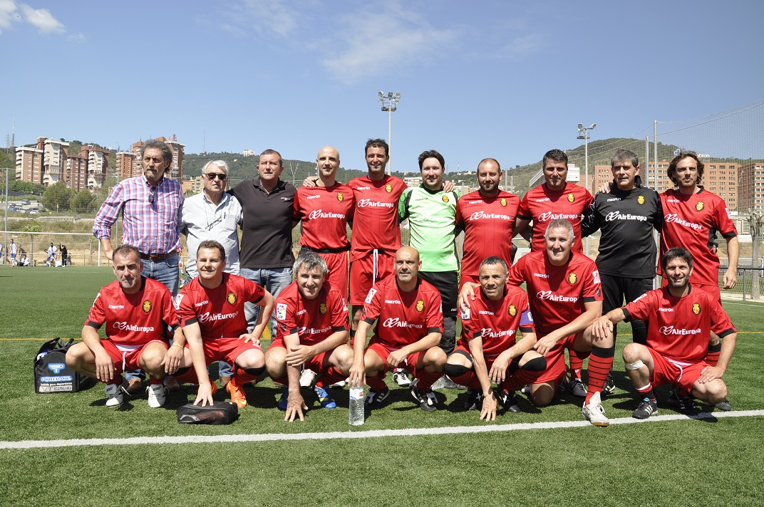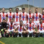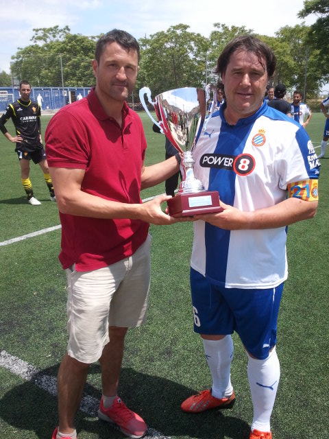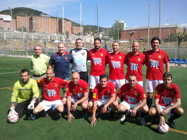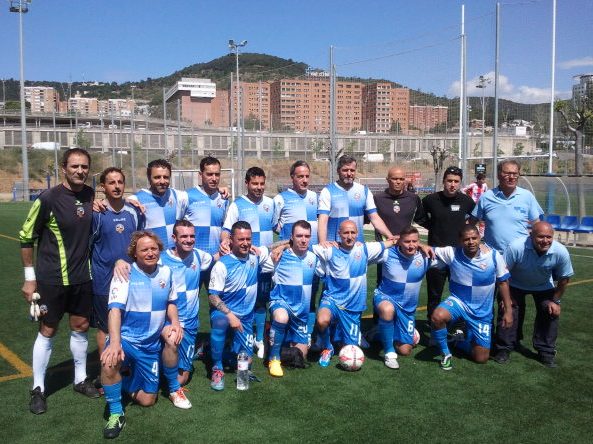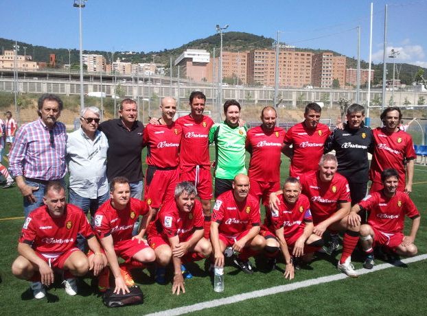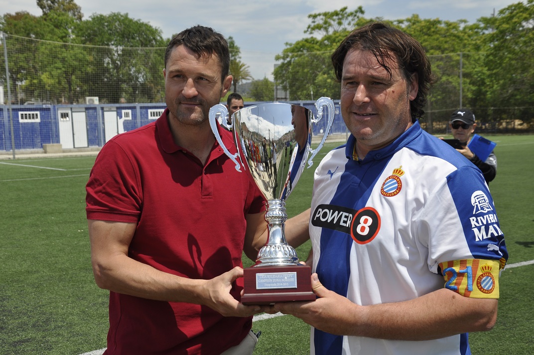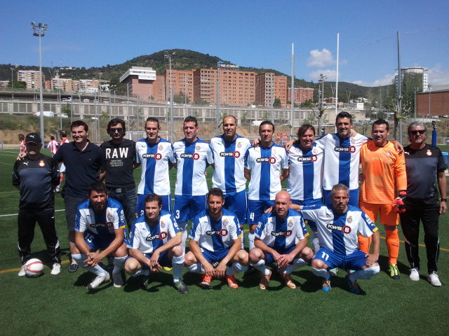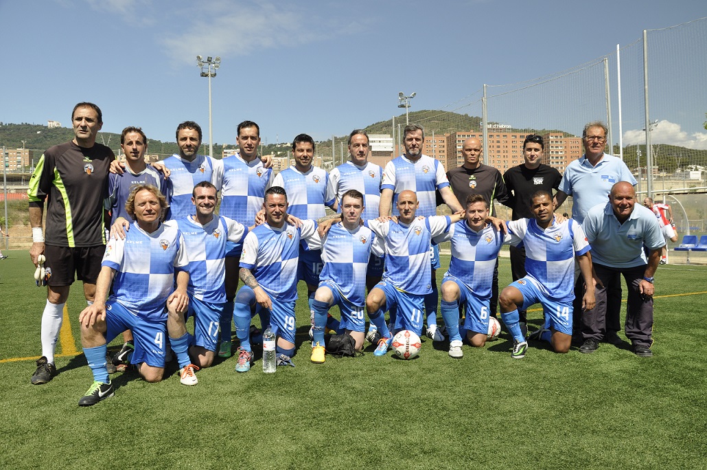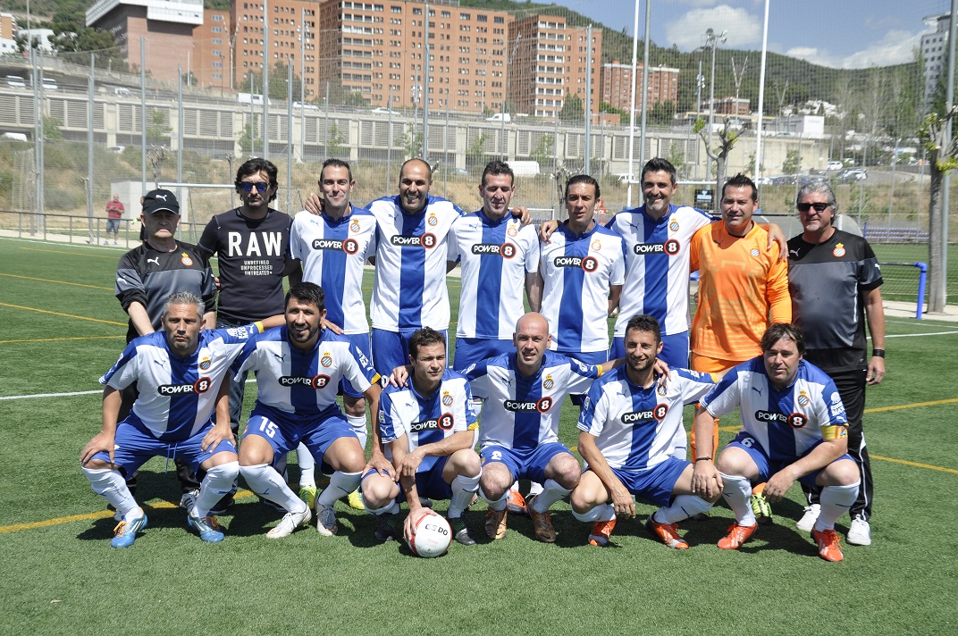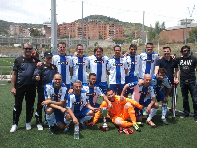 Vall d´Hebron (Barcelona), 24 de mayo de 2015. El equipo de veteranos del RCD Espanyol se proclamó campeón de la Liga Solidaria FEAFV en la zona Noreste, tras los nueve partidos de fútbol 7 disputados en la Ciutat Esportiva Vall d´Hebron – Taxonera (Barcelona), sede 2 del campeonato (la sede 1 se disputó en el mes de octubre de 2014 en las instalaciones deportivas de la Báscula, en el distrito barcelonés de Sants Montjuic).