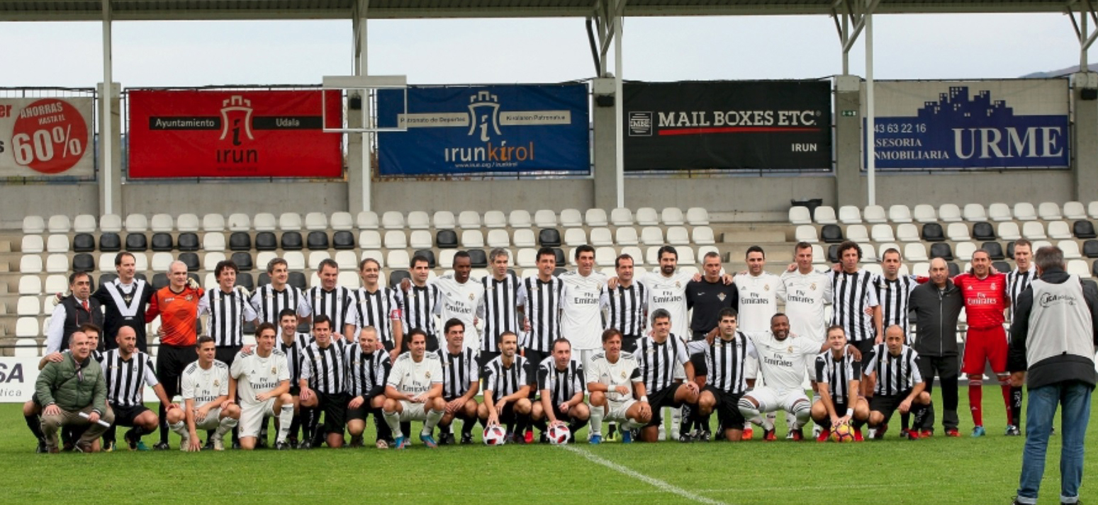 Irún (Gipuzkoa), 18 de noviembre de 2018. El Stadium Gal de Irún acogió el partido conmemorativo disputado entre las asociaciones de veteranos del Real Unión y del Real Madrid, con motivo del centenario de la final de Copa celebrada en 1918 entre idénticos equipos.