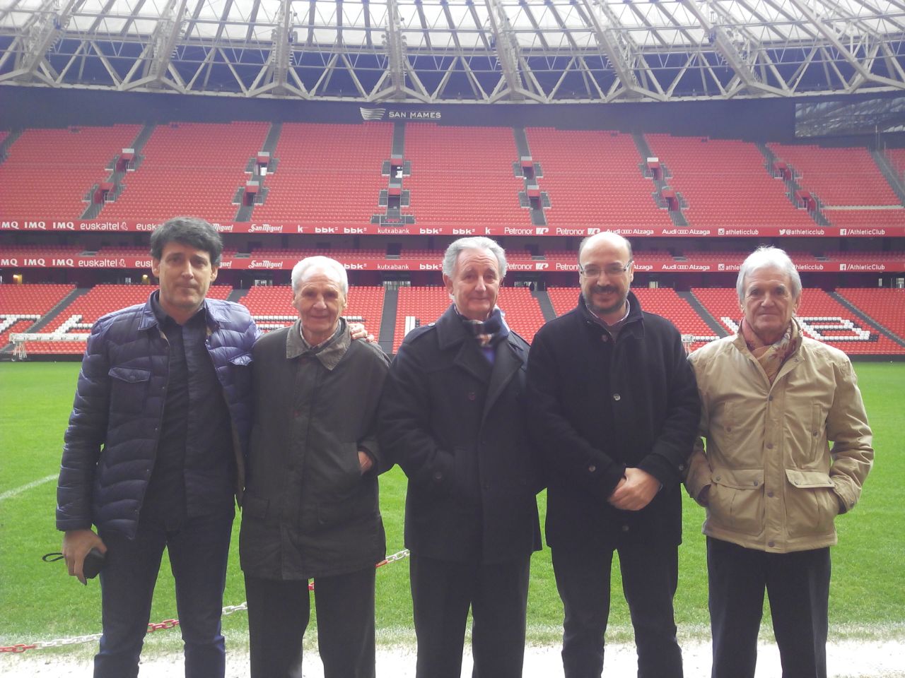 Bilbao. 18 de febrero de 2015. La sexta sesión del Taller de Reminiscencia organizado y financiado por la FEAFV (Federación Española de Asociaciones de Futbolistas Veteranos) se celebró en el Palacio de Ibaigane, sede del Athletic Club. En la primera parte de la sesión (Terapia de Reminiscencia) los participantes vieron y tocaron diferentes objetos relacionados con el fútbol (camisetas y botas antiguas, botas más modernas, balones antiguos y modernos, maqueta del antiguo San Mamés, maqueta de la propia sede de Ibaigane, banderines, trofeos,…) e intentaron reconocerlos y relacionarlos con su utilidad dentro del fútbol. Además, vincularon los objetos presentes con sus vivencias y recuerdos personales.