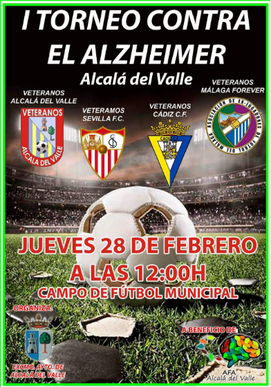 Alcalá del Valle (Cádiz), 28 de febrero de 2019. Las Asociaciones de Ex jugadores del Málaga Club de Fútbol “Forever”, del Cádiz Club de Fútbol y del Sevilla Fútbol Club se dieron cita en el Campo de Fútbol Municipal de Alcalá del Valle para participar, junto al equipo anfitrión, en el cuadrangular solidario “I Torneo contra el Alzheimer” a beneficio de la Asociación Familiares Alzheimer (AFA) de esta localidad gaditana.