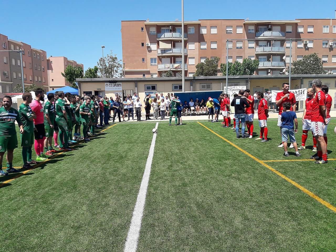 Juan Geli marcó para los albinegros y Mara anotó el tanto del conjunto pimentonero en un encuentro muy entretenido y que fue presenciado por más de un centenar de espectadores. Este derbi de veteranos fue el plato fuerte de una jornada ocio-deportiva en la que durante doce horas se celebraron partidos de fútbol 5 de diferentes categorías.
