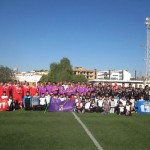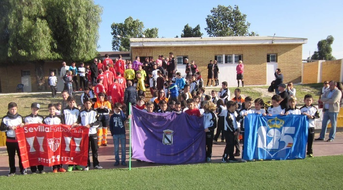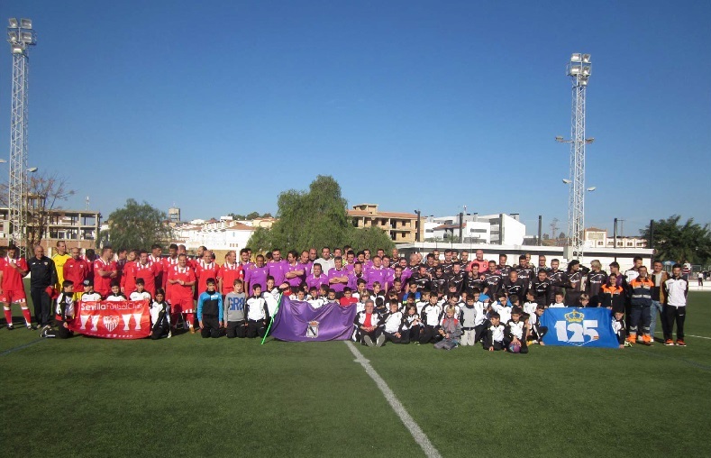 Gibraleón (Huelva), 31 de enero de 2016. Las Asociaciones de veteranos del Real Club Recreativo de Huelva y del Sevilla FC –ambas miembro de la FEAFV-, junto a un combinado de futbolistas del club de Fútbol del municipio de Gibraleón, protagonizaron un triangular deportivo con una doble causa: por un lado, rendir homenaje al que fuera jugador del club onubense y de otros clubes de primera división, “Pepe” Sierra, y por otro, recaudar fondos a beneficio de la Cruz Roja de la localidad.