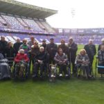 Valladolid, 19 de marzo de 2019.Los participantes en el Taller de Futbol en la Residencia Ballesol La Victoria de Valladolid visitaron el pasado mes de marzo el Estadio del Real Valladolid acompañados por los ex jugadores Victor Fernández y Marcos- El capitán del equipo blanquivioleta Javi Moyano se acercó a saludar a los residentes.
